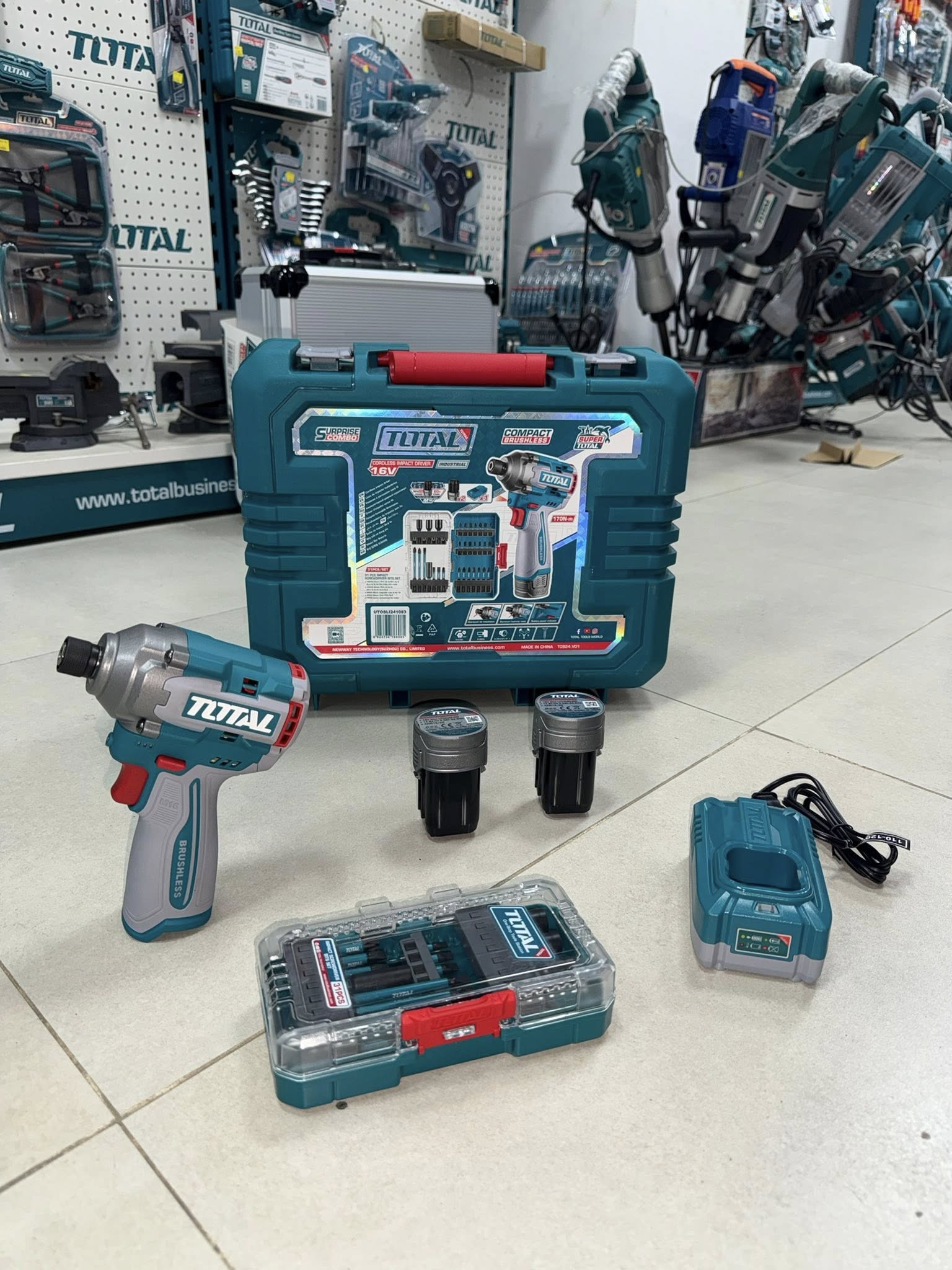ATORNILLADOR DE IMPACTO 16V 1/4 170NM + 31 ACCESORIOS + 2 BATERIAS (2.0AH) + CARGADOR TOTAL UTOSLI241083_15692