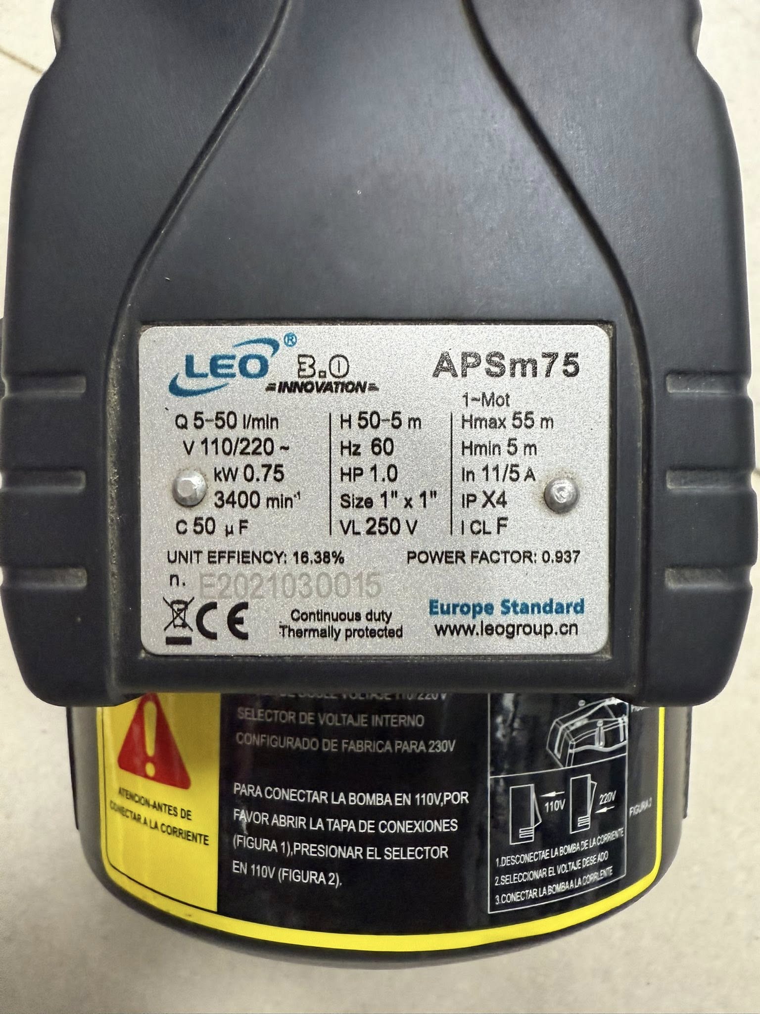 BOMBA PERIFERICA AUTOCEBANTE 1″X1″ 1HP – 11/5 AMP 110/220V LEO, APSM75_15555 — ficha técnica