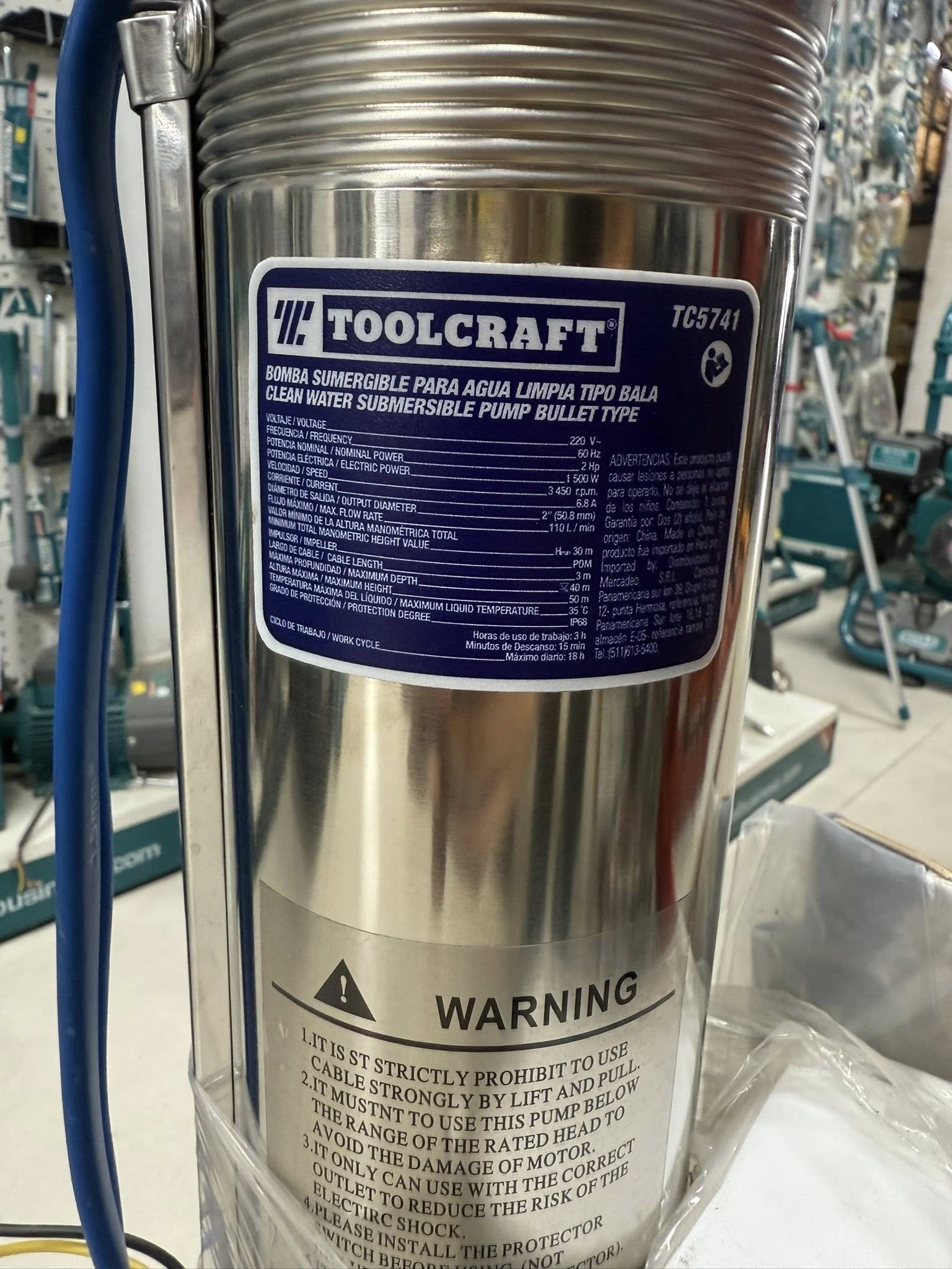 BOMBA SUMERGIBLE LAPICERO TOOLCRAFT 2HP/220V PARA AGUA LIMPIA TC5741_14670 — ficha técnica