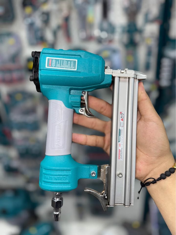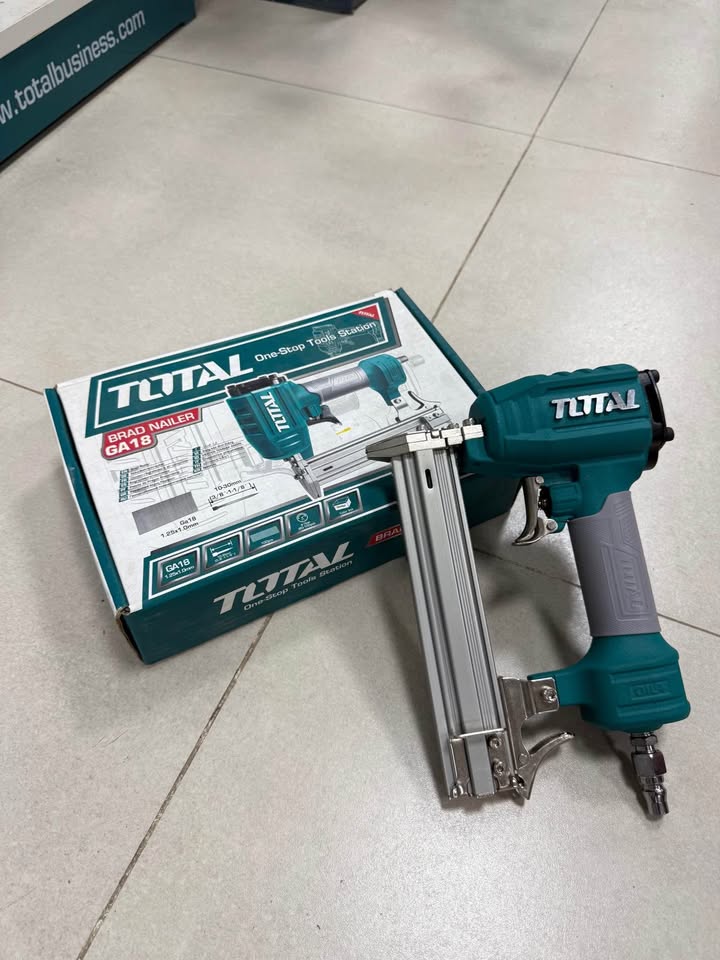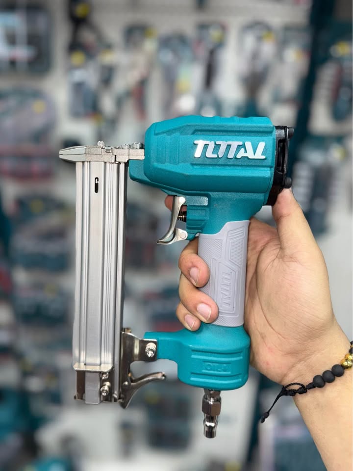 La pistola clavadora neumática TOTAL es una herramienta compacta y eficiente, ideal para trabajos de carpintería, ensamblaje y acabados. Funciona con aire comprimido y es compatible con clavos tipo pin de 10 a 30 mm de longitud.