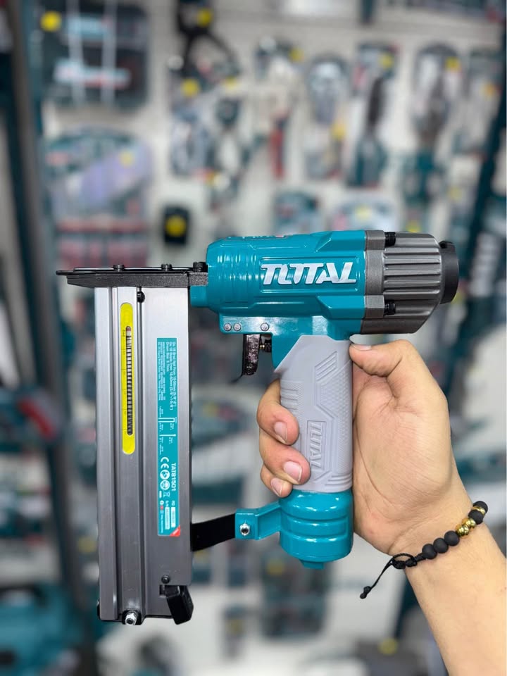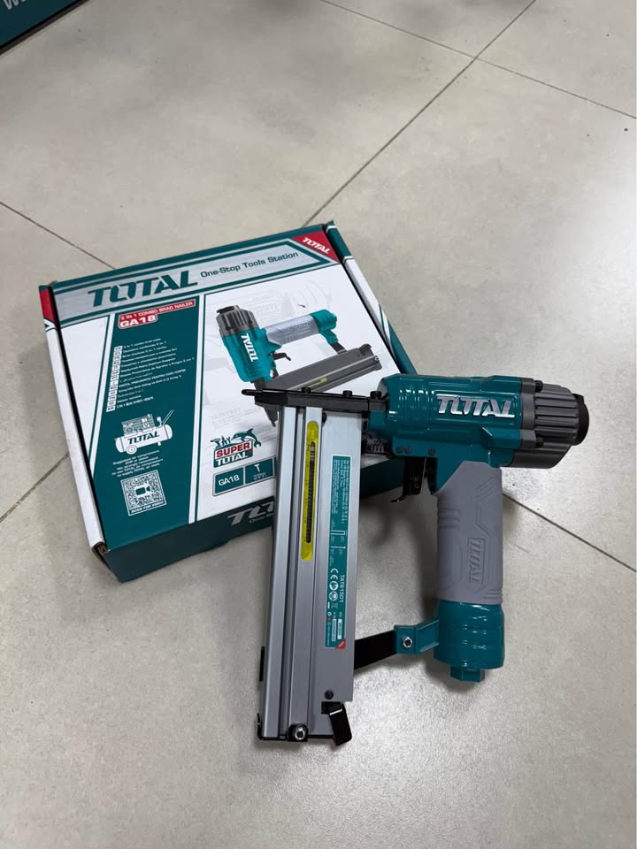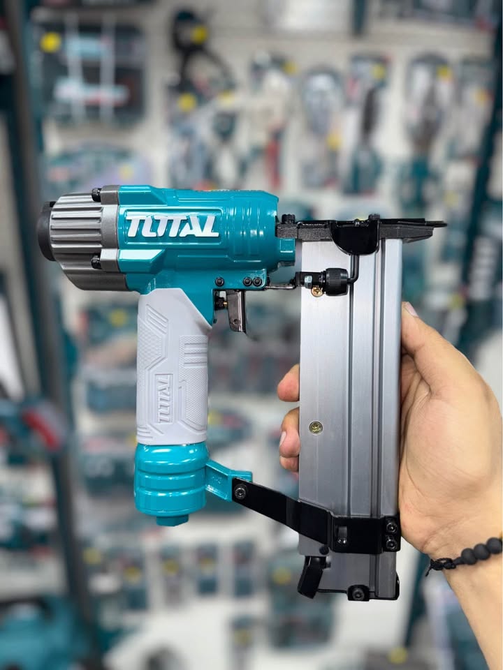 La clavadora y grapadora neumática 2 en 1 TOTAL es una herramienta versátil y robusta que combina dos funciones en una: clavar y engrapar con aire comprimido.