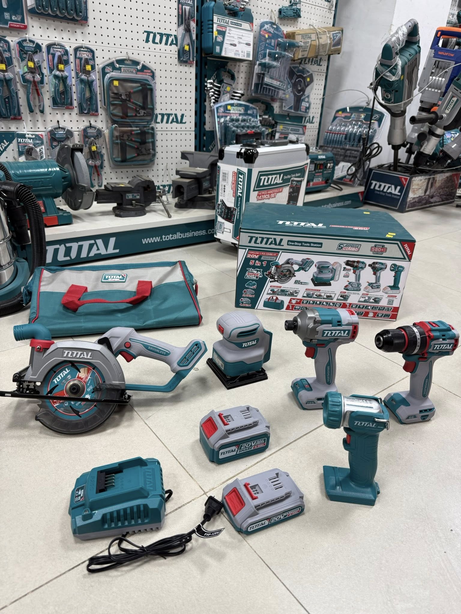 COMBO TOTAL SIERRA CIRCULAR + TALADRO IMPACTO 66Nm + LLAVE DE IMPACTO 285Nm + LIJADORA ORBITAL + LINTERNA UTOSLI241081_14994