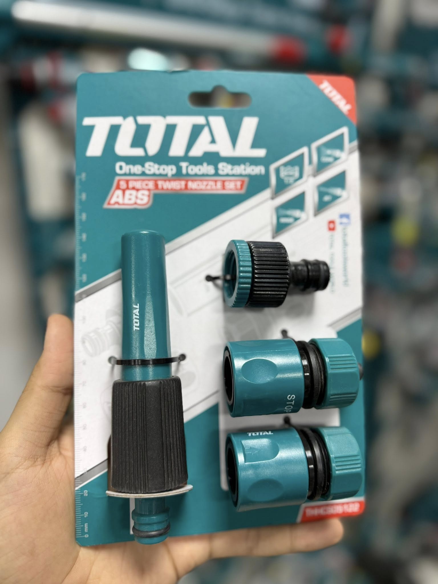 El juego de boquillas conectoras giratorias de 5 piezas Total Tools (modelo THHCS05122) es un kit práctico y versátil diseñado para facilitar el riego y el uso de mangueras en el hogar o jardín. Incluye conectores rápidos con y sin parada de agua, adaptadores para grifos de ½″ y ¾″, y una boquilla giratoria ajustable que permite controlar el flujo y tipo de chorro. Fabricado en plástico resistente, es compatible con la mayoría de mangueras estándar y ofrece una conexión segura, rápida y sin fugas. Ideal para tareas de jardinería o limpieza exterior.