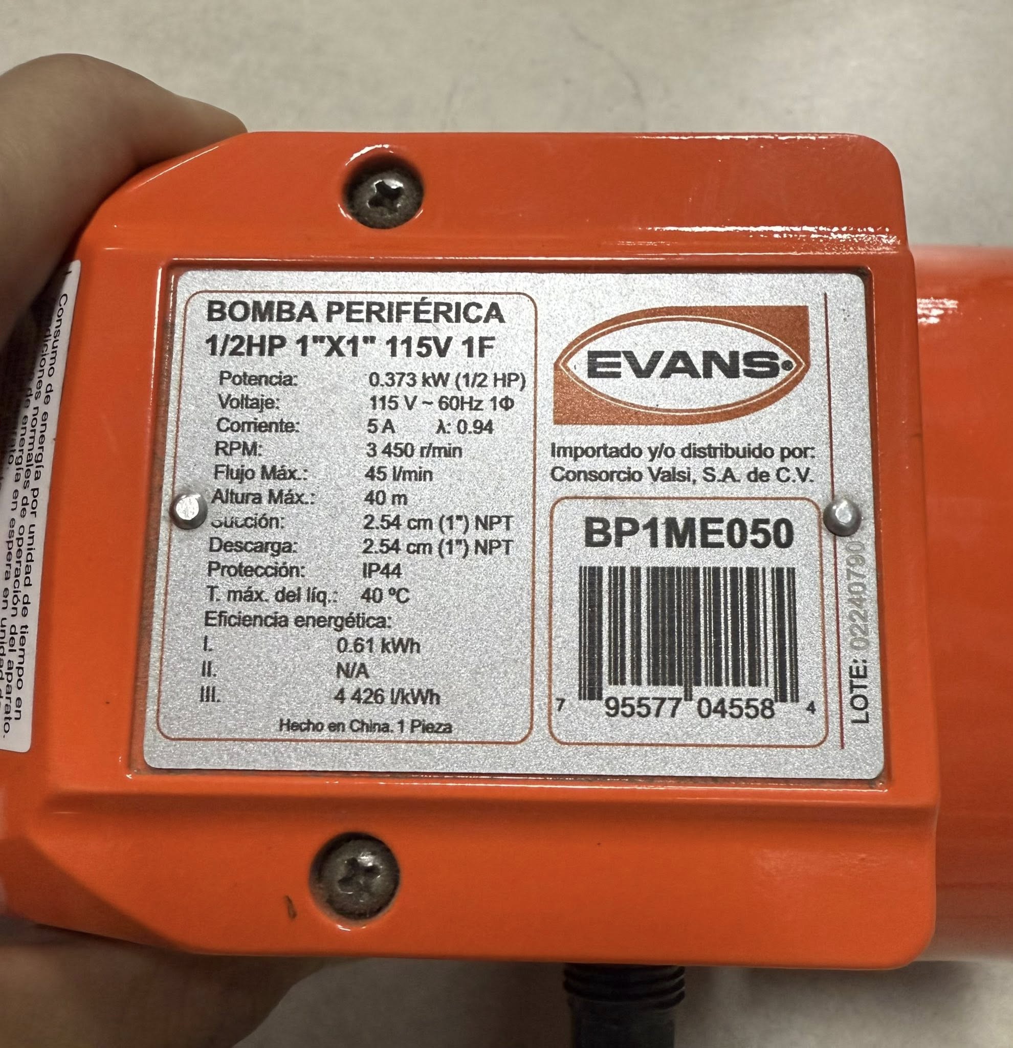 ELECTROBOMBA PERIFERICA DE 1/2 HP EVANS BP1ME050_15701