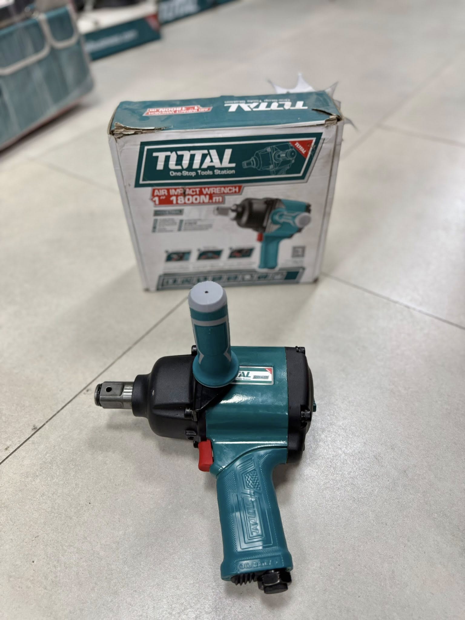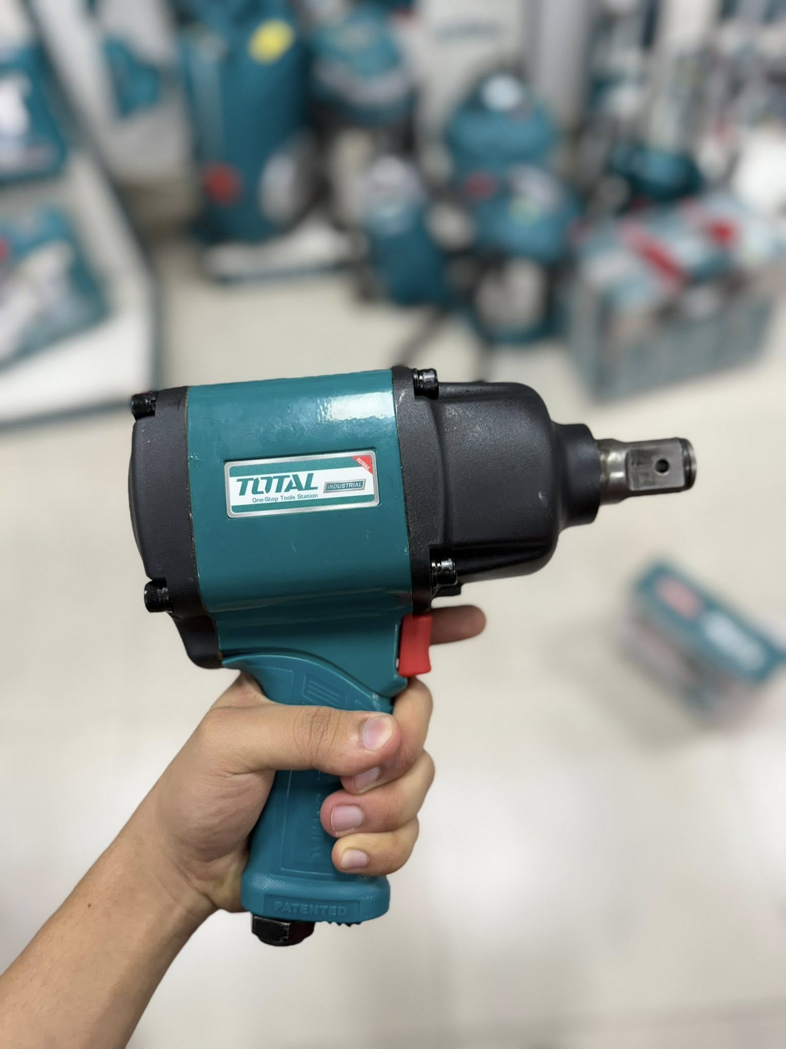 La pistola de impacto neumática TOTAL TAT41112 es una herramienta profesional de 1" diseñada para aplicaciones que demandan alto torque y confiabilidad. Su construcción robusta y mecanismo de martillo gemelo garantizan un desempeño superior en el desmontaje y montaje de tuercas y pernos de gran tamaño.