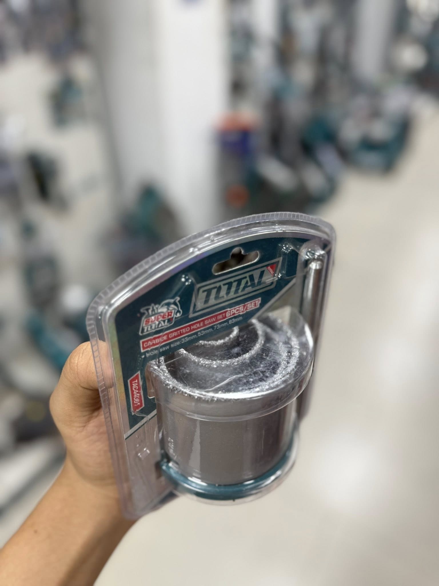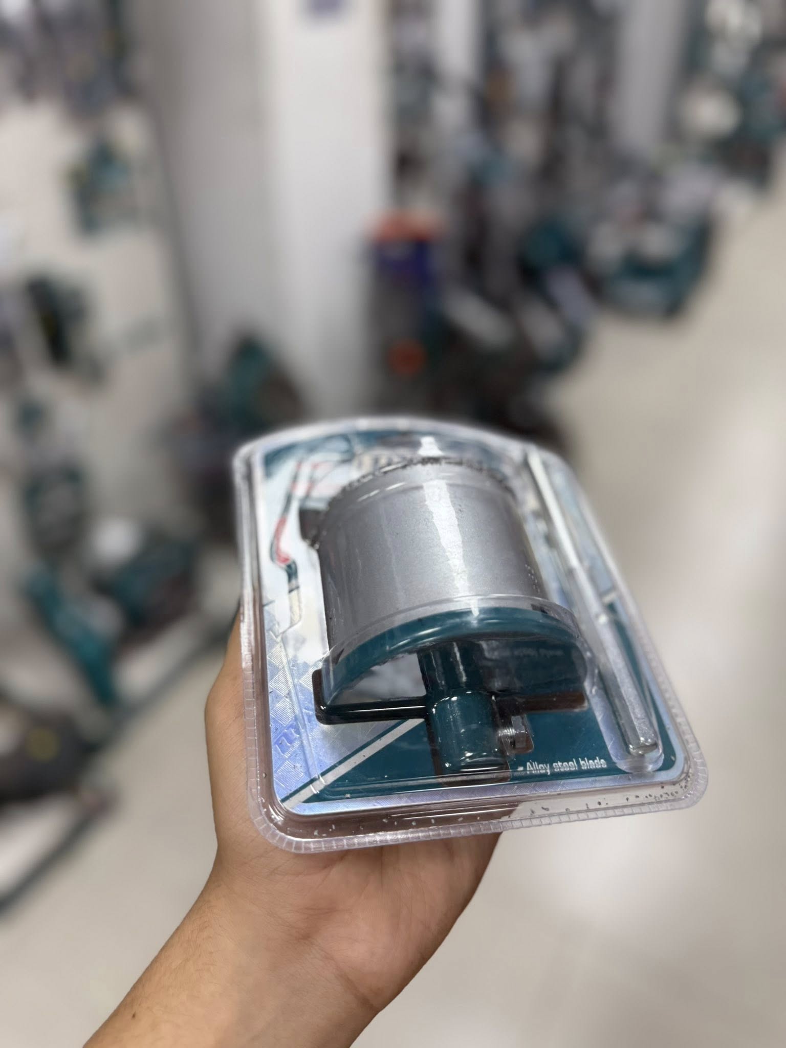 Este set comprende cuatro sierras copa de 33 mm, 53 mm, 73 mm y 83 mm, además de un porta sierra y una broca piloto con placa de localización en aluminio, todo empaquetado en blister doble para fácil manejo.